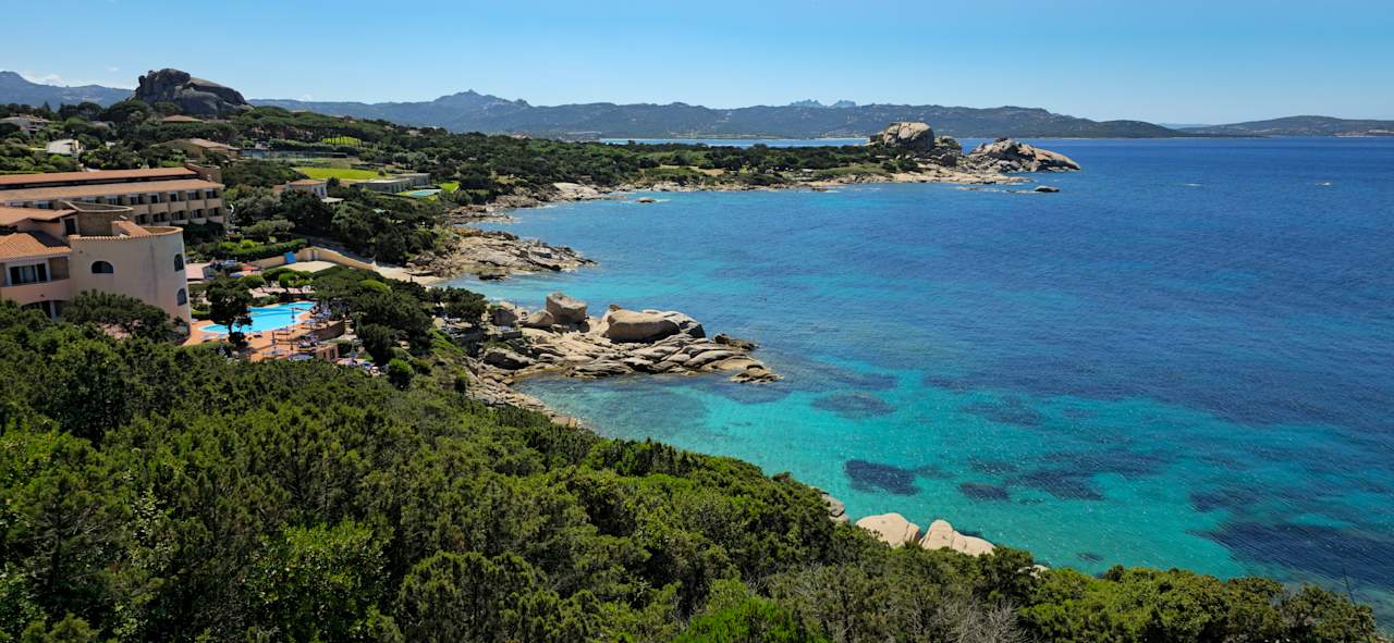 Blick auf das Hotel und die Küste