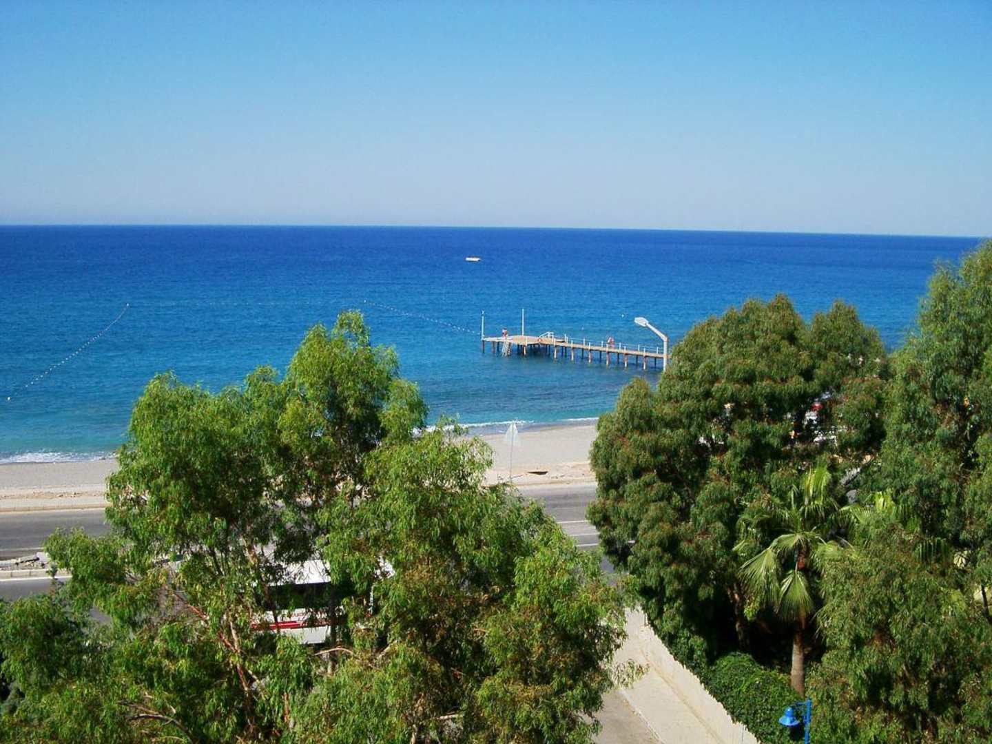 Über Strand und Bootsteg auf das Meer