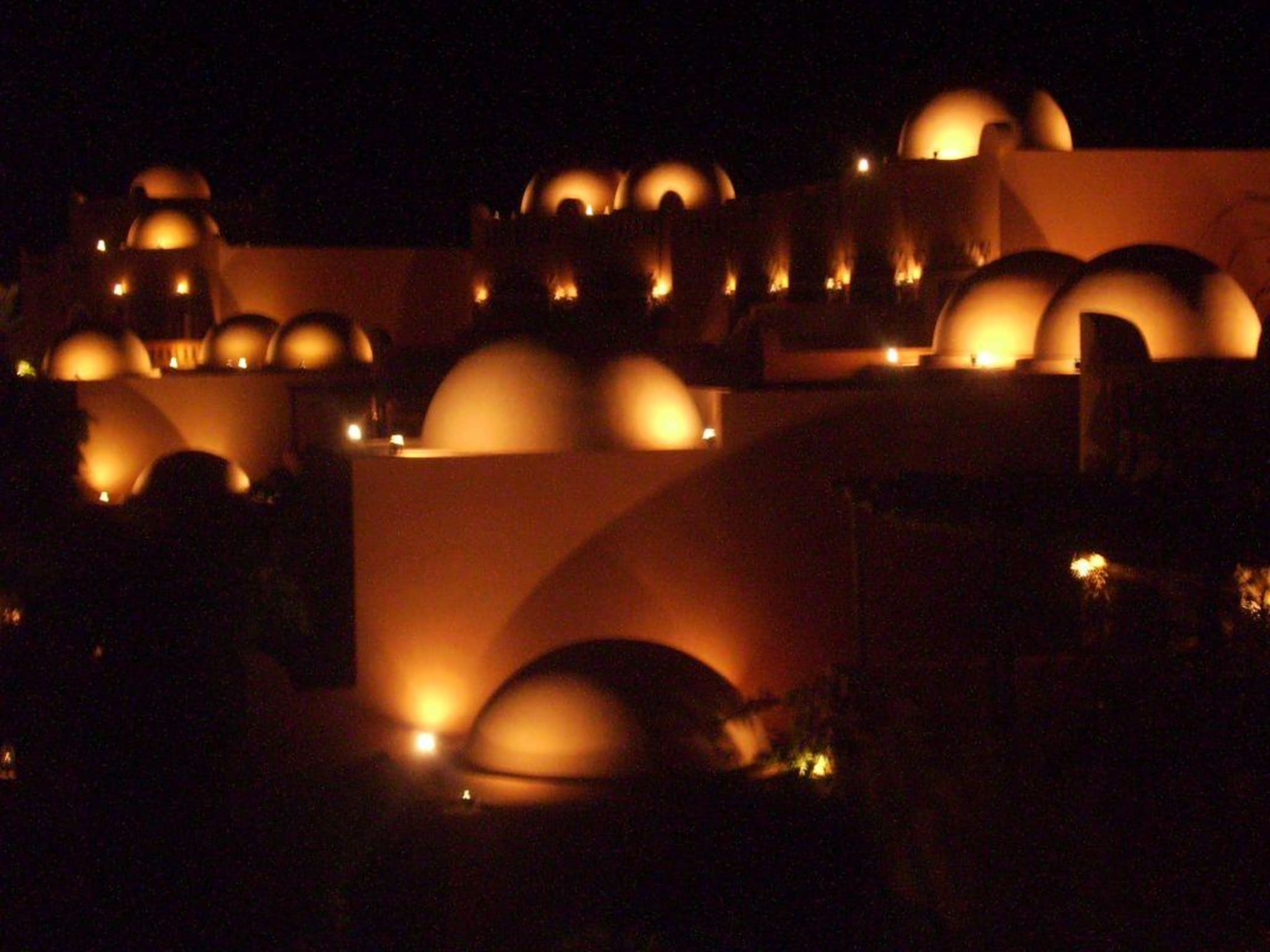 nächtlicher Blick auf Zimmergebäude: Goldkuppeln oder doch nur Beleuchtung?