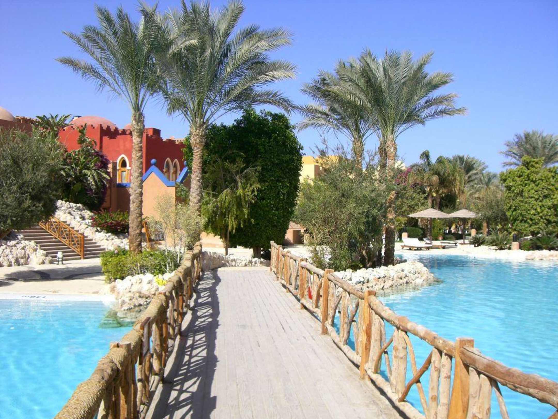 Der Weg zum Grand Cafe über eine der Poolanlagen