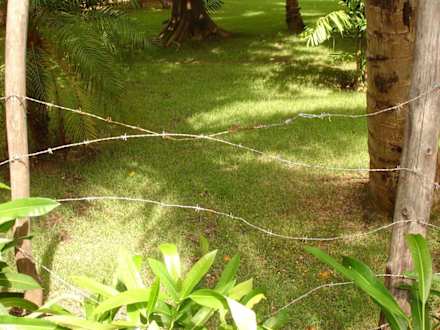 StacheldrahtabsperrungAchtung! Verletzungsgefahr bei Stacheldrahtabsperrung in der Gartenanlage.