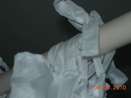 Schlaufen vom HimmelbettEinige Schlaufen war völlig kaputt bzw. zerrissen. Einige Schlaufen waren so fest verknotet, dass ein Zuziehen des Umhanges nur mit viel Geduld und Kraftanwendung möglich war.