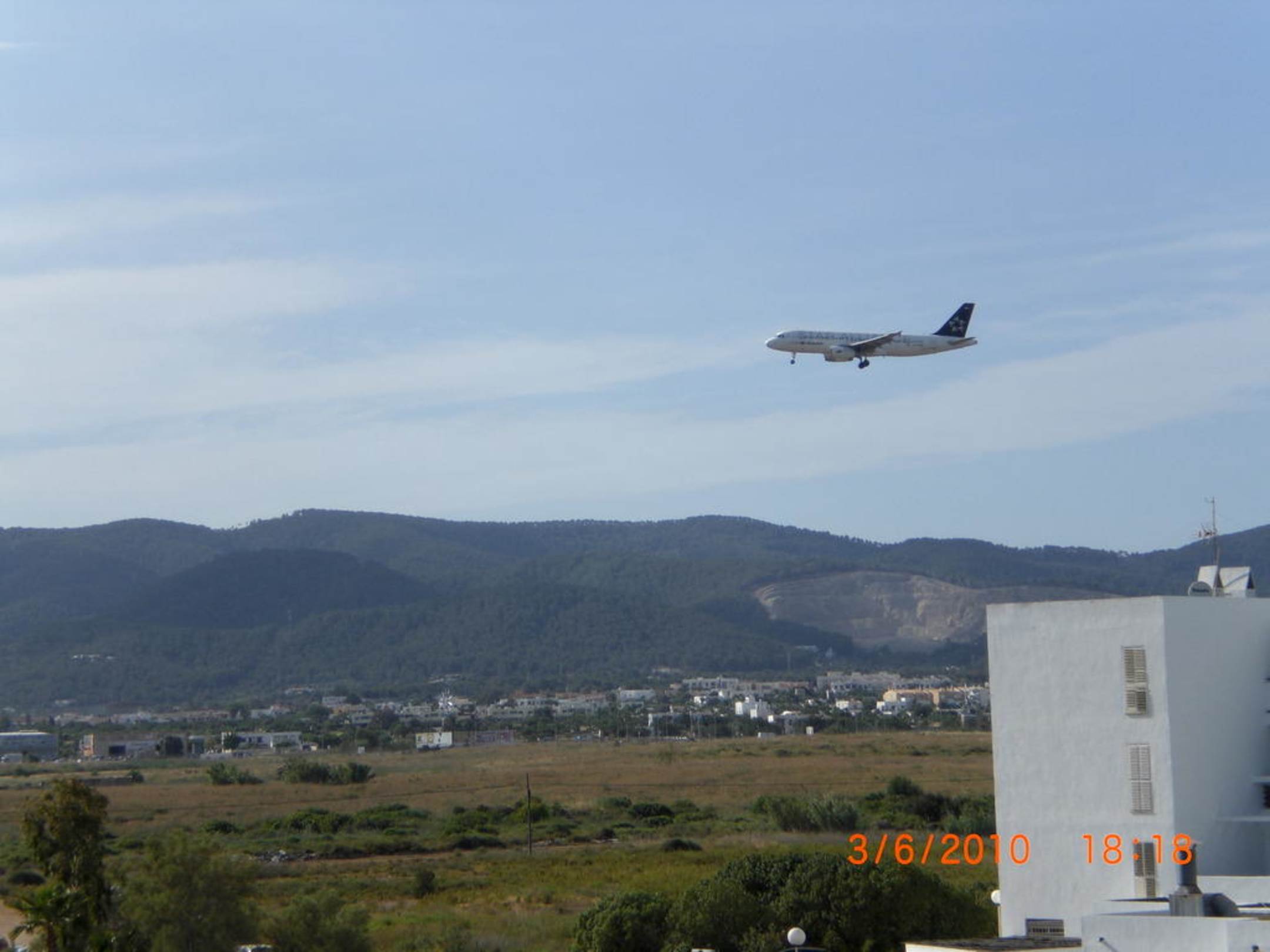 So sieht man die Flugzeuge wenn sie kurz vor der Landung am Hotel vorbei fliegen.