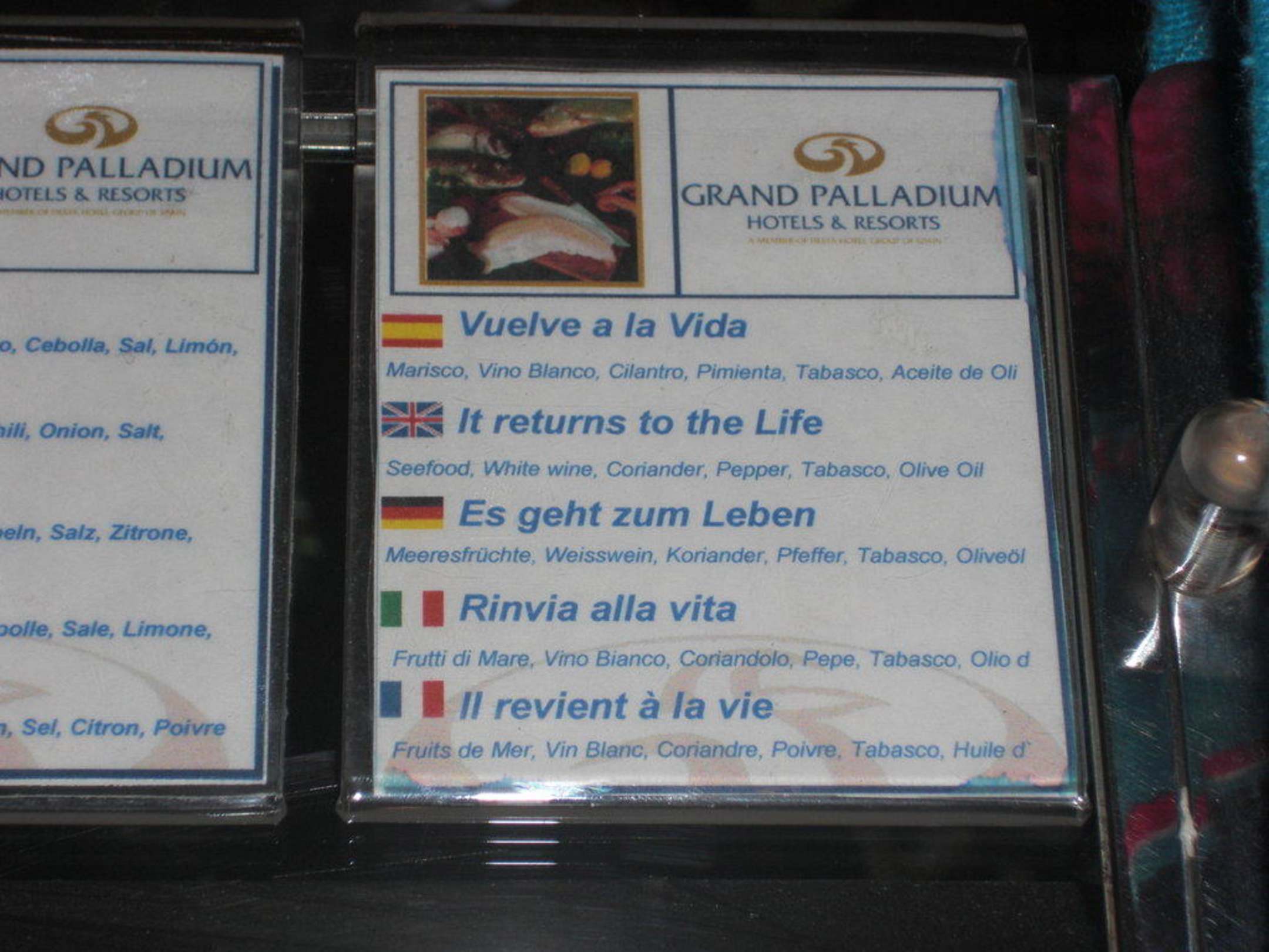 Übersetzungen der Speisekarte Grand Palladium Select White Sand Resort & Spa