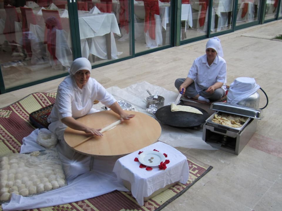 zwei türkische Damen bei der Zubereitung einer Speise