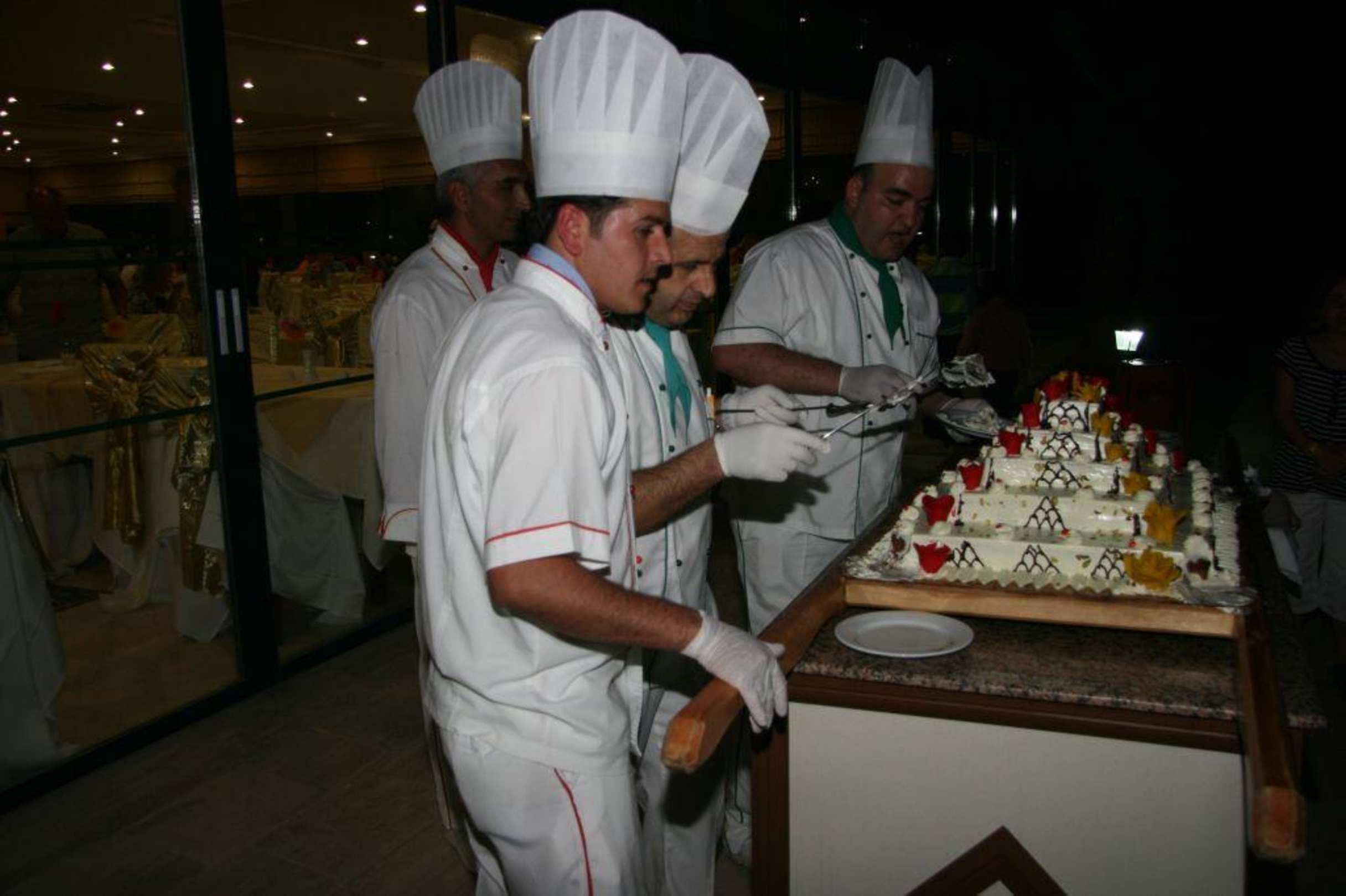 Eis Torte wird von den Köchen Angeschnitten