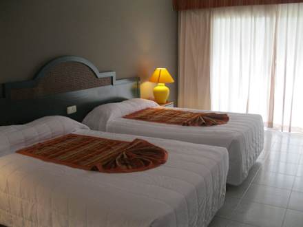Zimmer - die weisse Zudecke ist ohne Bezug -ihhhBrettharte Betten, klumpige Kopfkissen und dickere Decken ohne Bezug