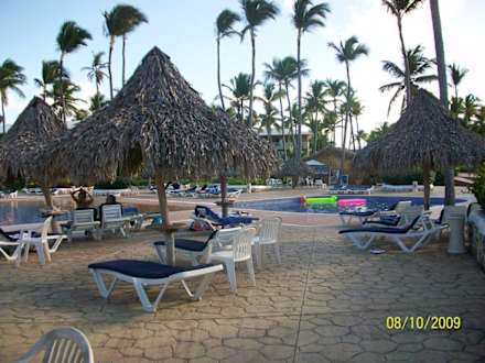 Liegen und Schirme am Pool Grand Sirenis Punta Cana Resort & Aquagames