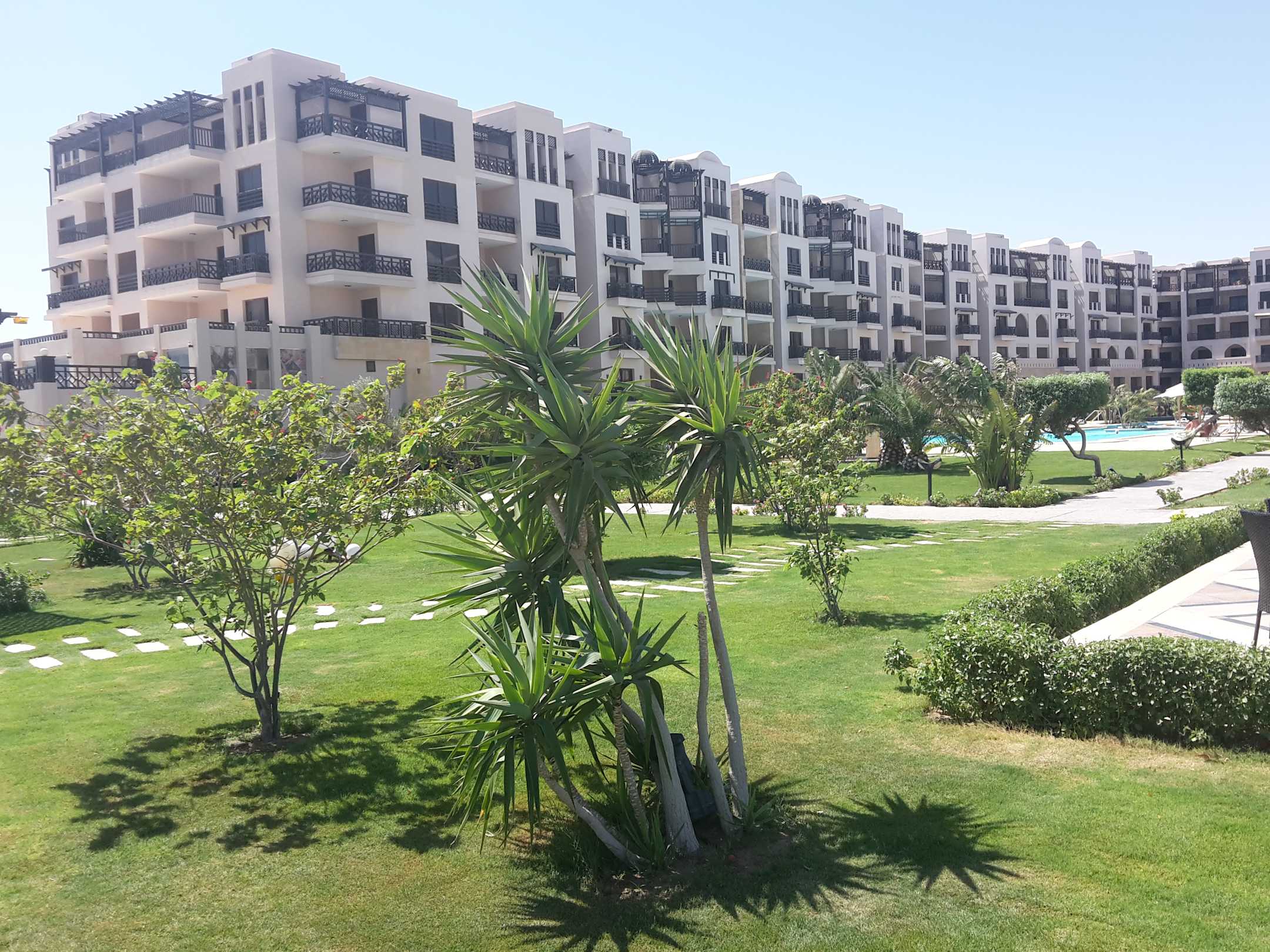 Blick vom Strand zum hotel