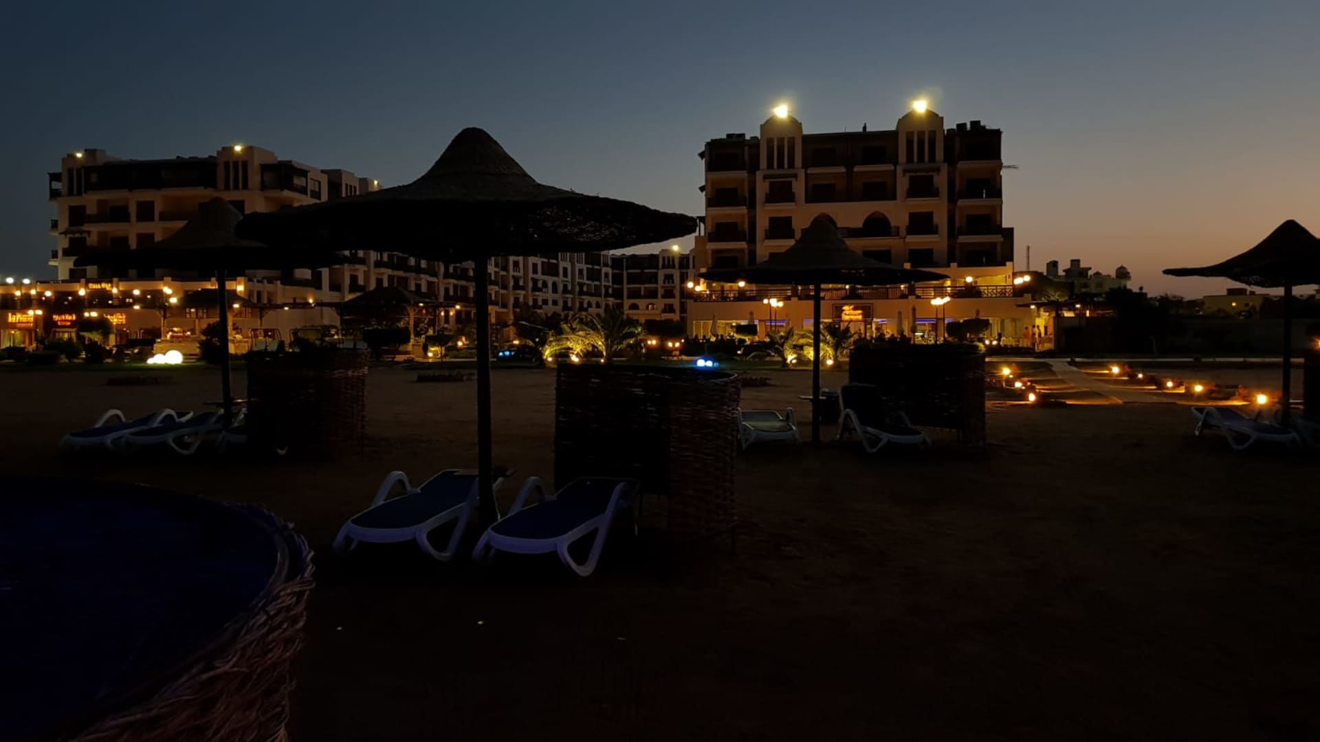 Strand mit Hotel im Hintergrund