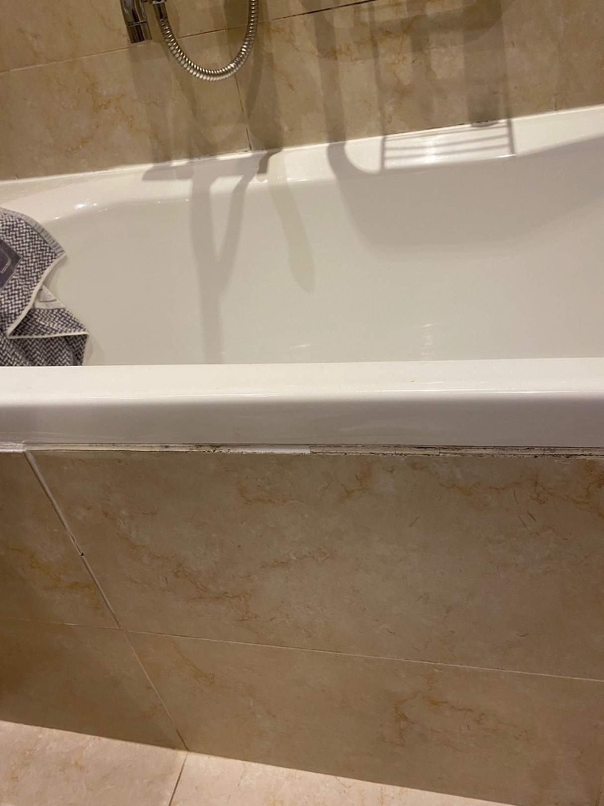 Schimmel und Dreck an der Badewanne - keine Dusche sondern nur Handbrause