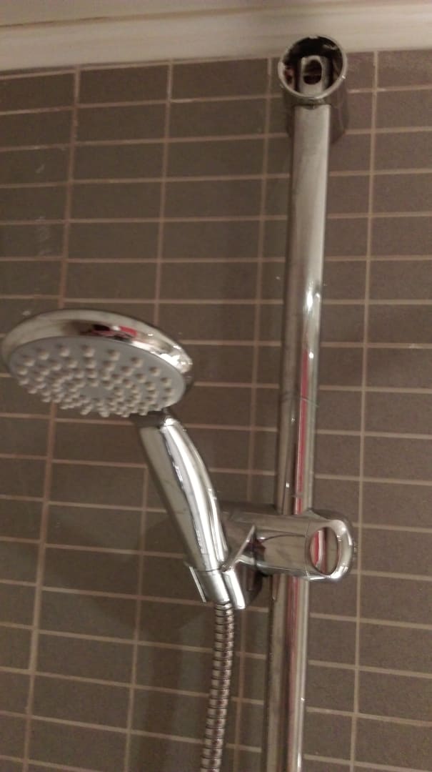 Abdeckung Duschgestell fehlt, Verletzungsgefahr