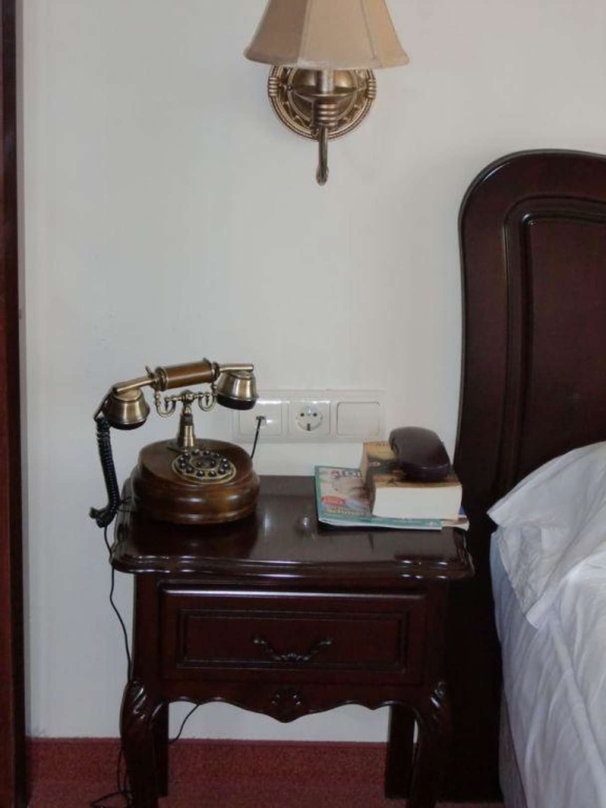 Ein nostalgisches Telefon schmückte das Zimmer.