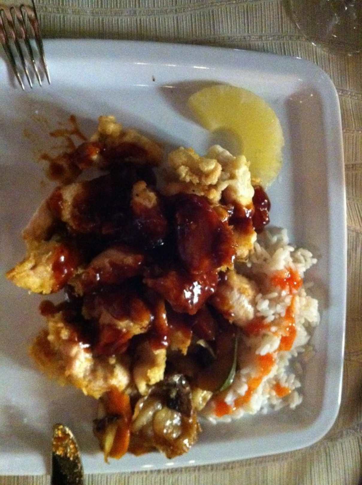 Hähnchen in süßsaurer Sausse mit Reis und Gemüse