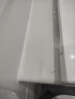 Hinter der WC Brille.Schmutz.Wurde in 12 Tagen nie gereinigt.