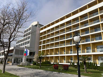 Blick vom Strand auf das Hotelgebäude