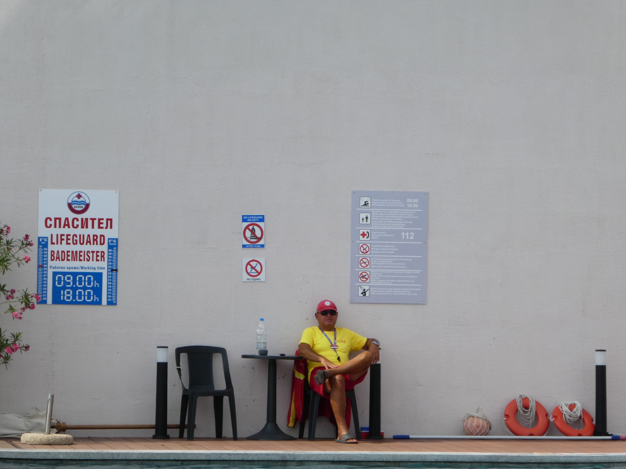Bademeister Infinity-Pool bei der Arbeit. Schreitet auch mal ein wenn was ist.