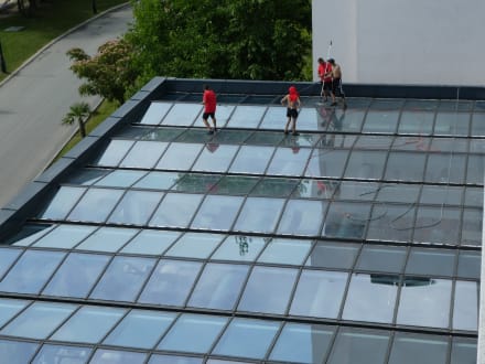 Glasdecke Innenpool wird gereinigt