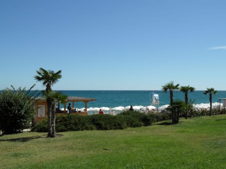 Blick zur Strandbar und zum Meer