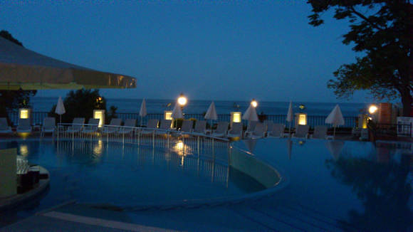 Abends am Pool mit Meerblick