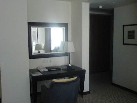 Schreibtisch Juinior SuiteHier der Schreibtisch. Der Gang rechts geht zur Eingangstuer. Links um die Ecke ( nicht sichtbar ) ist das Gaeste-WC