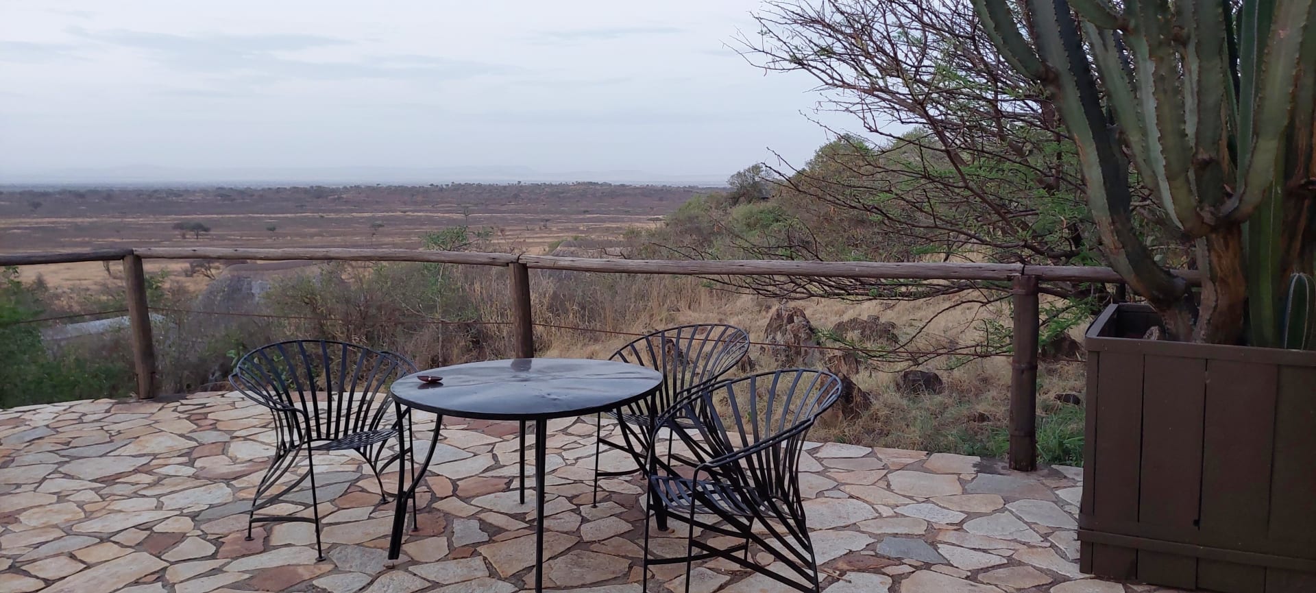 Blick von der Terrasse auf die Serengeti.