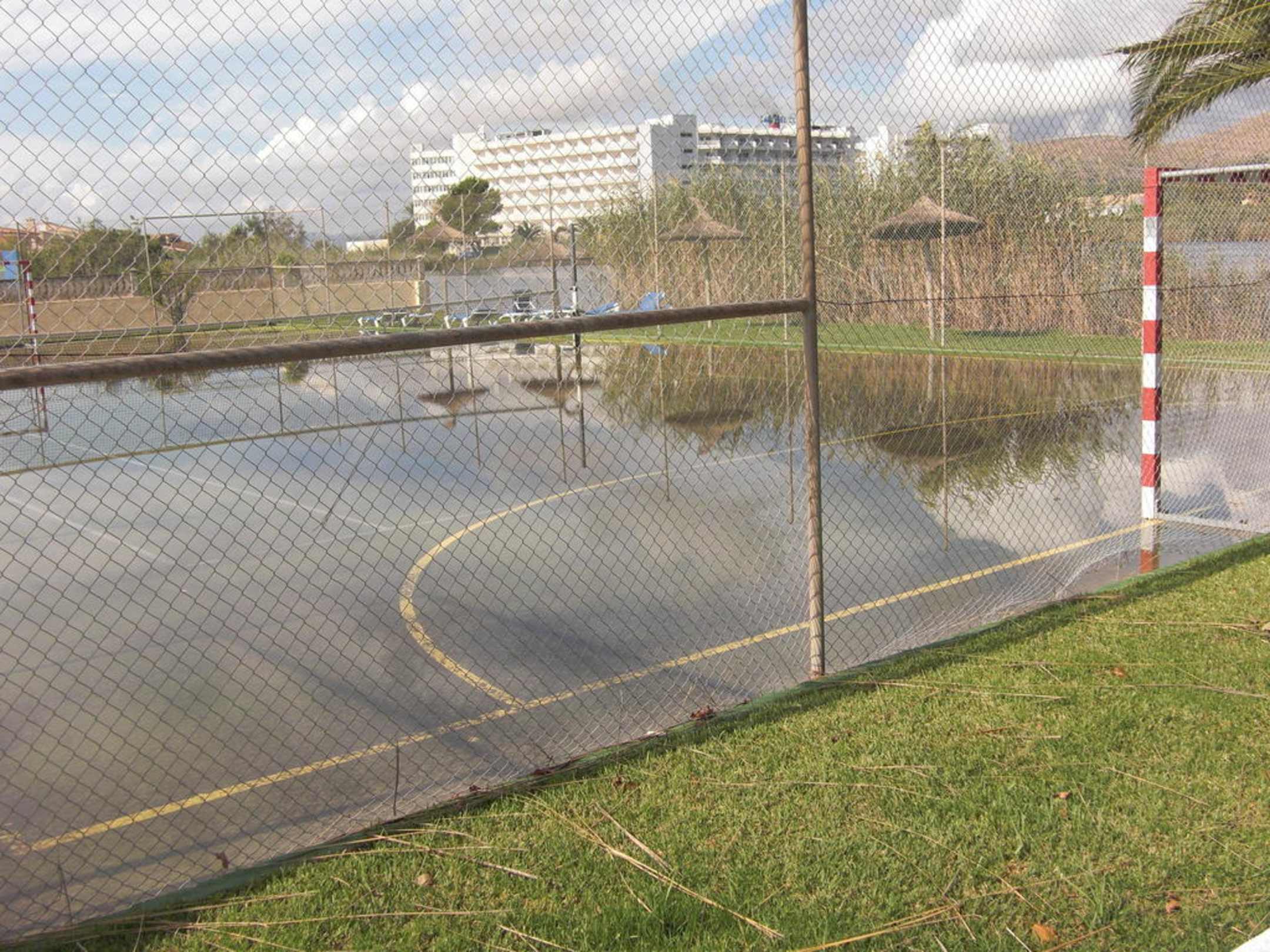 Überschwemmter Tennisplatz Hotel Amapola