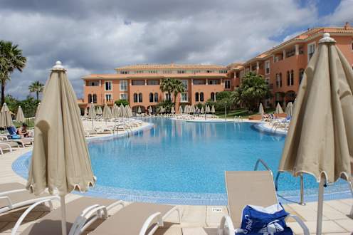 Blick vom Pool auf das zweite Gebäude