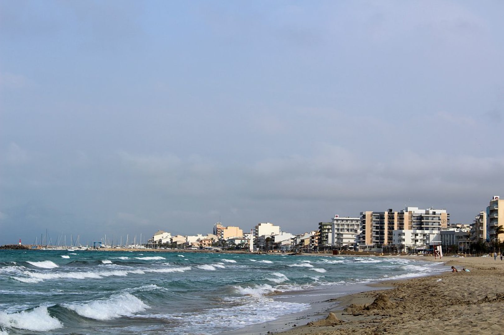 Der Strand vor den Hotels bei windigem Wetter