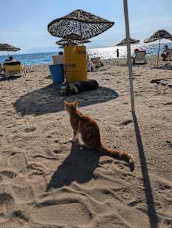 Hund und Katze am Strand