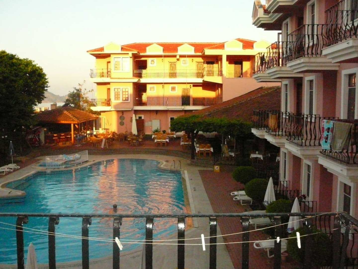 Widok z balkonu na basen w dzień Günes Hotel