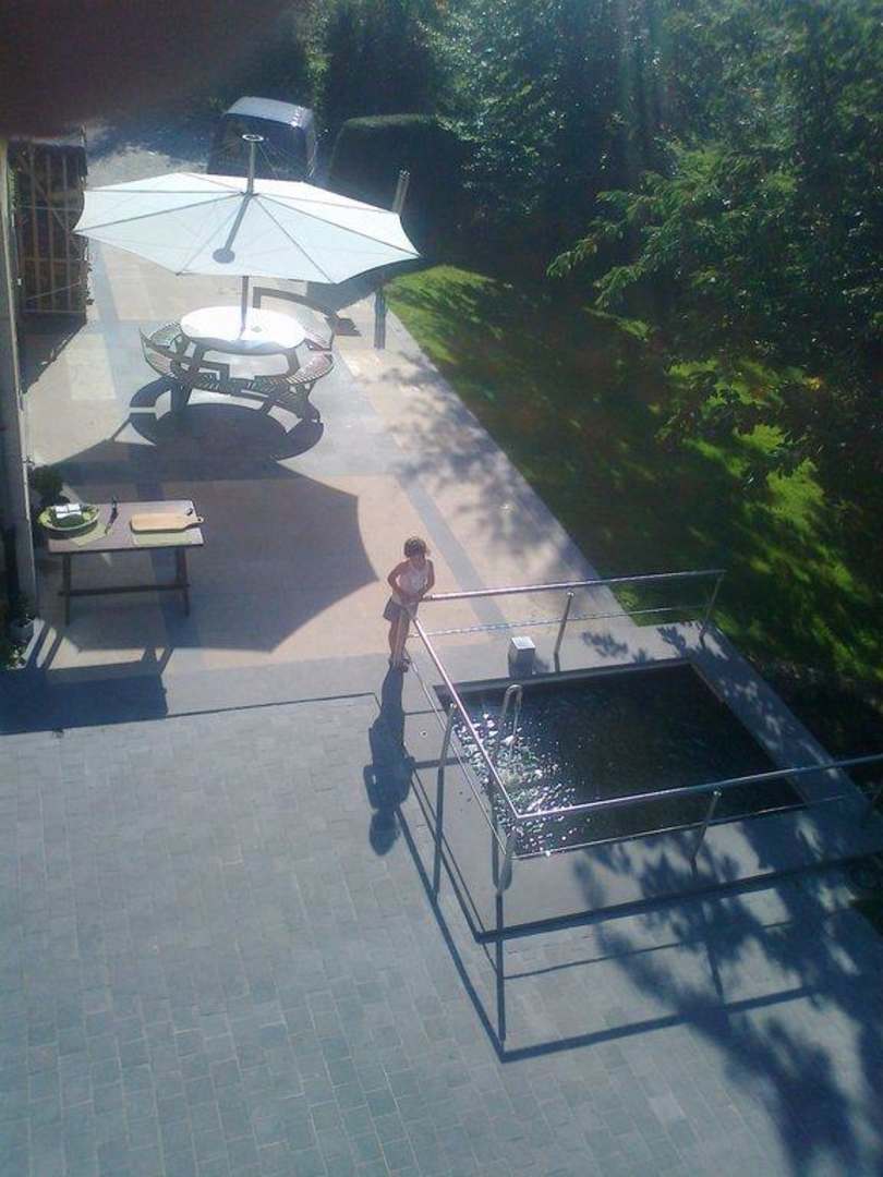 Blick in den GartenDer Innenhof ist windgeschützt ! Das kleine Wasserbassin hat einen Abfluß zum künstlichen Wasserfall