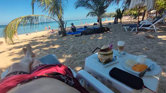 StrandIst das nicht mega, Unterkunftseigener Privatstrand, einfach ein Plätzchen suchen sich die Liege hinziehen oder von der eigen Terrasse den Tisch oder die Stühle mitnehmen und aufstellen wo man will. Rechts gleich ein Restaurant, perfekt!