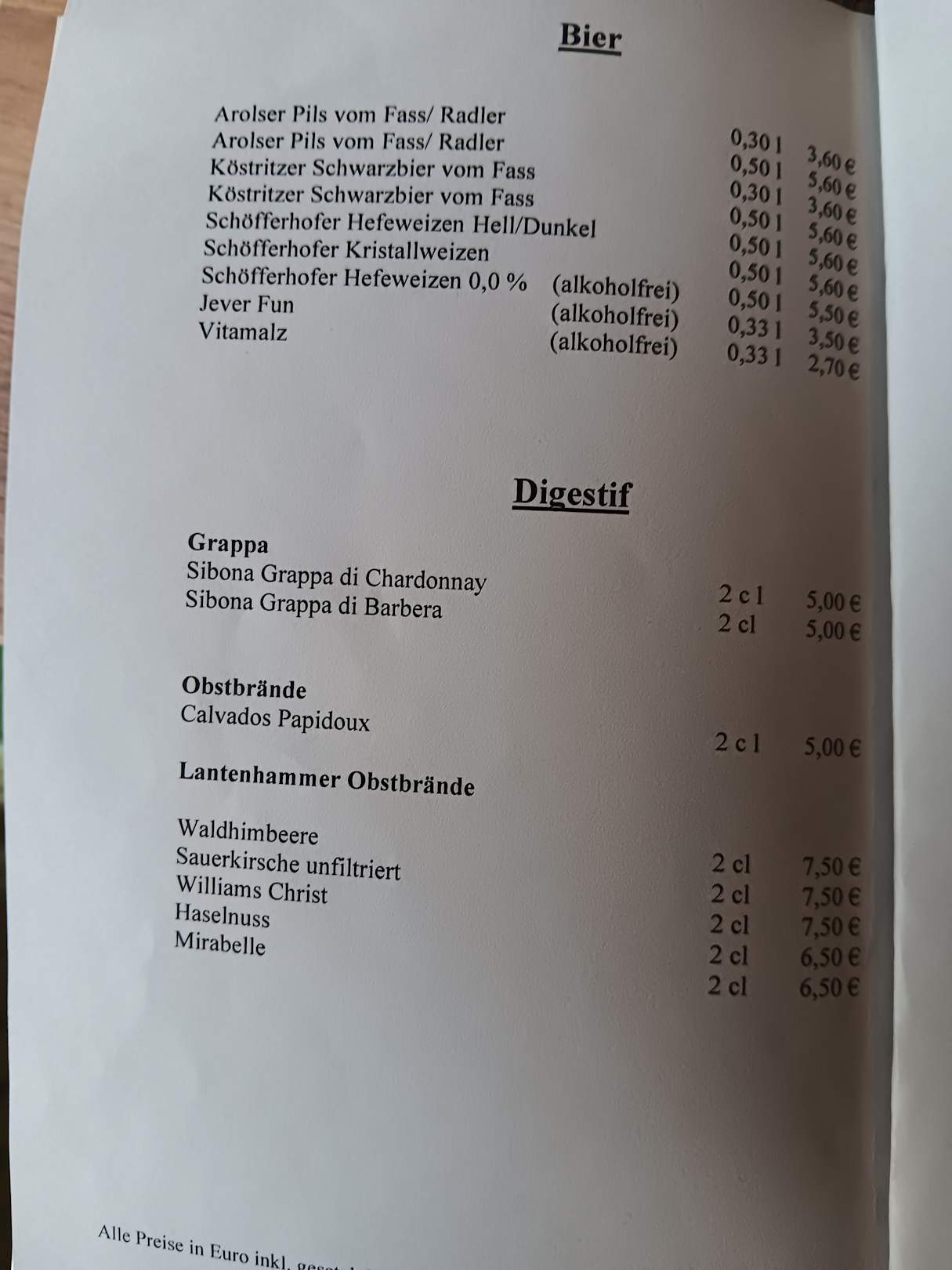 Getränkekarte