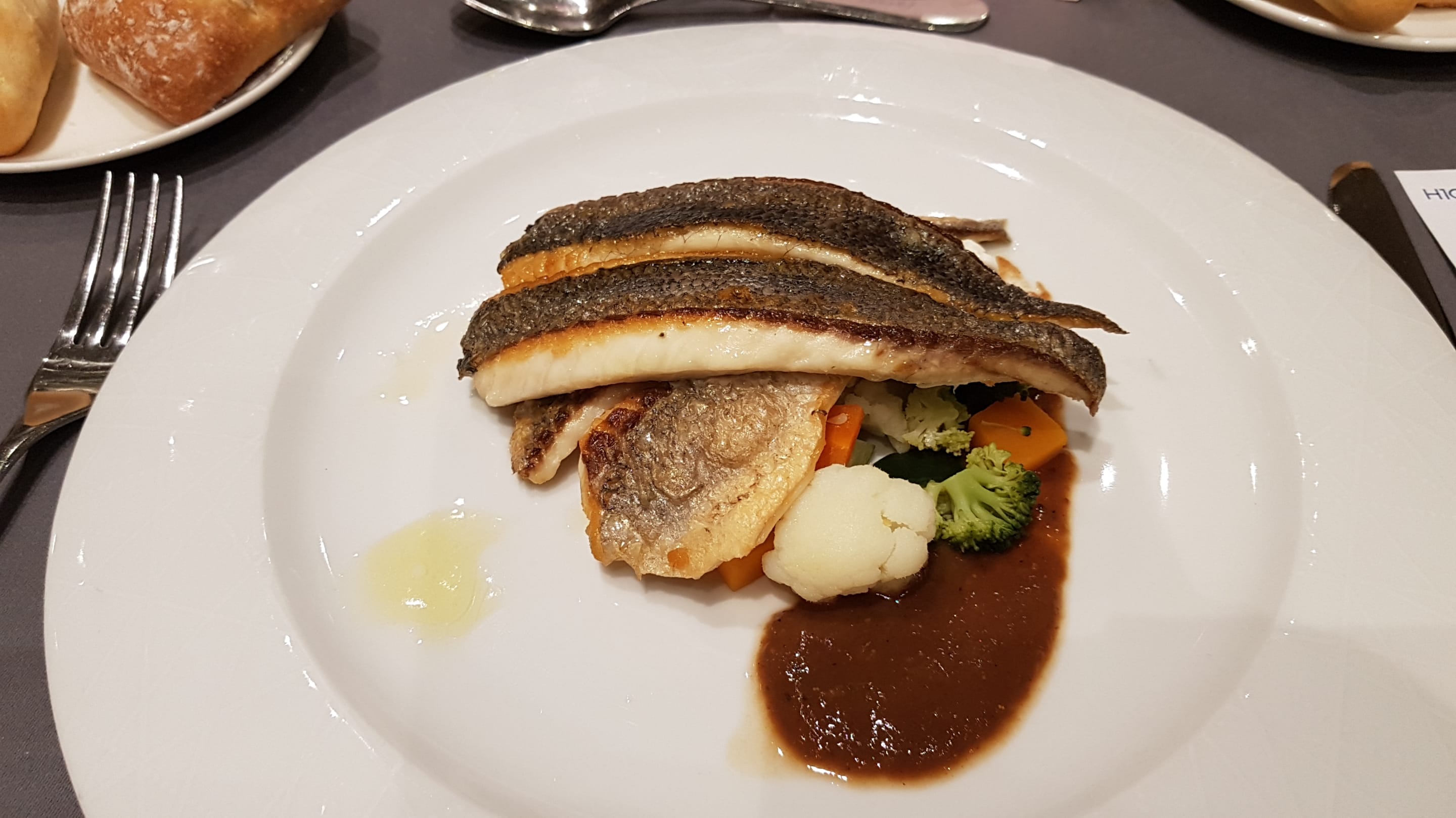 Gegrillte Seebrasse mit sautiertem Gemüse und orientalischer Sauce