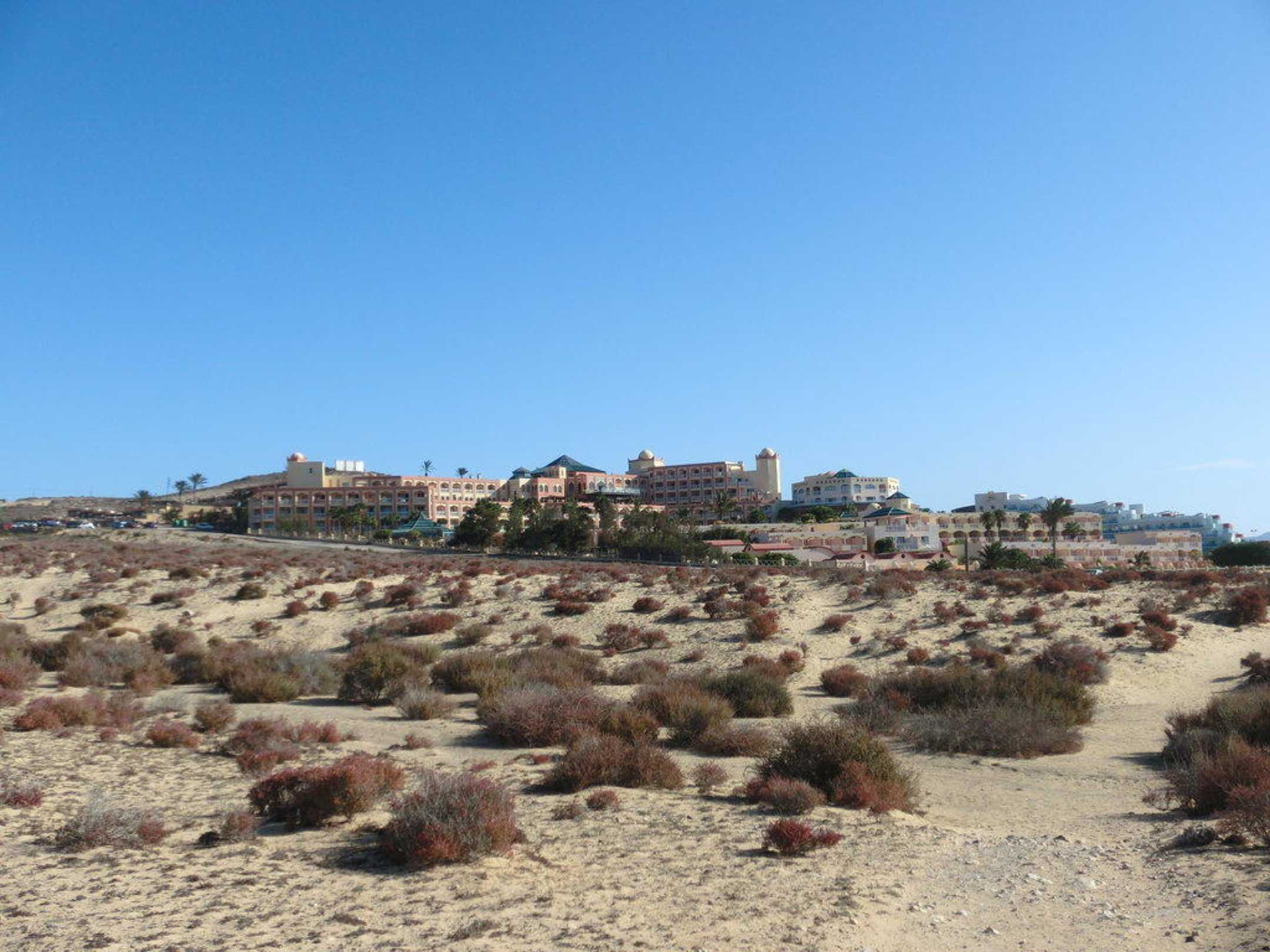 2011 SENTIDO H10 Playa EsmeraldaBlick zurück zum Hotel von unseren Weg über Stock uns Stein zum tollen langen Sandstrand.