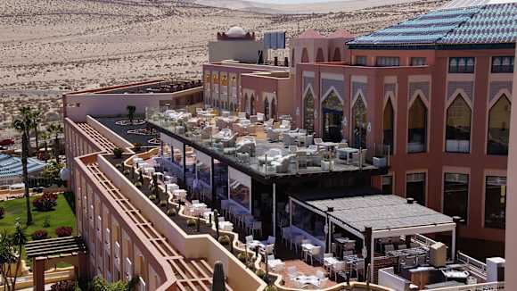 Oben die Bar-Terrasse; unten Restaurant