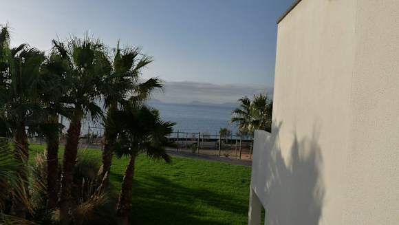 Blick vom Zimmer Richtung Meer mit der Insel Fuerteventura im Hintergrund