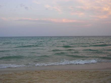 Meer/MorgendämmerungHammamet Regency Beach Hotel: Das Meer in der Morgendämmerung. Aufgenommen vor der Beach-Bar. Der Ausblick auf das Meer war sehr schön. Am Morgen war das Meer meist ganz ruhig und im Laufe des Tages kamen dann vermehrt Wellen. Leider war der Strand sehr schmutzig und der Müll landete dann z.T. auch im Meer.
