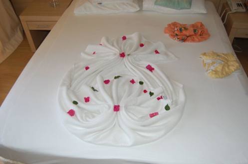 So schön wurden die Betten im Hane Family Resort gemacht.