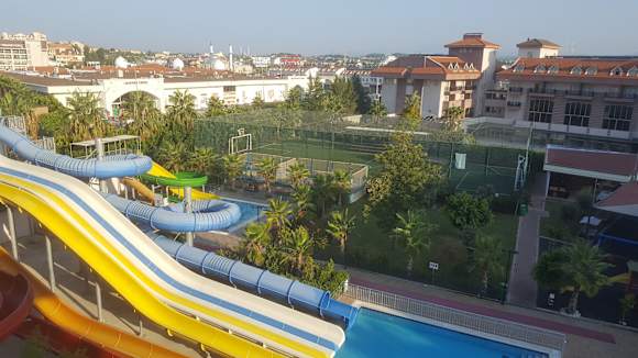 Wasserrutschen u. der Fußballplatz