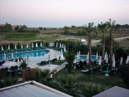 Aussicht auf Pool und Kinderpool nebst Gartenanlage und umliegende Landschaft
