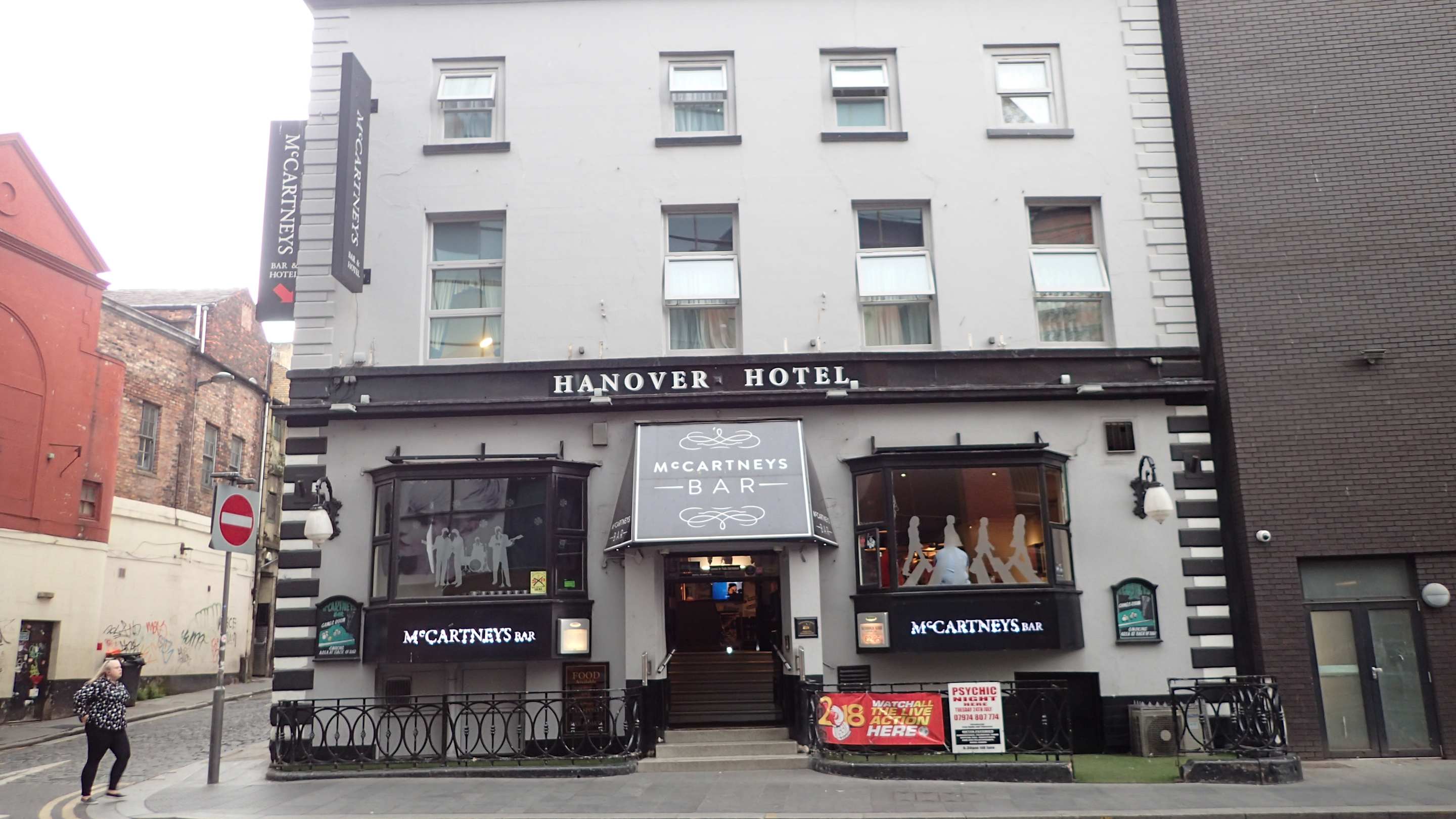 AußenansichtDas Hotel von der belebten Hanover Street aus, oben die Zimmer, unten die "McCartney´s Bar"