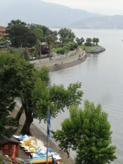 Der öffentliche Kiesstrand mit Bootsverleih.