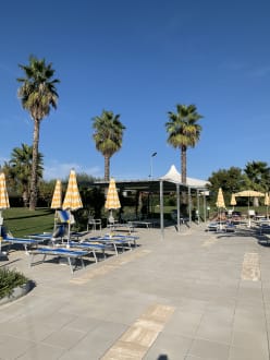 Sonnenliegen und genügend Schattenplätzen