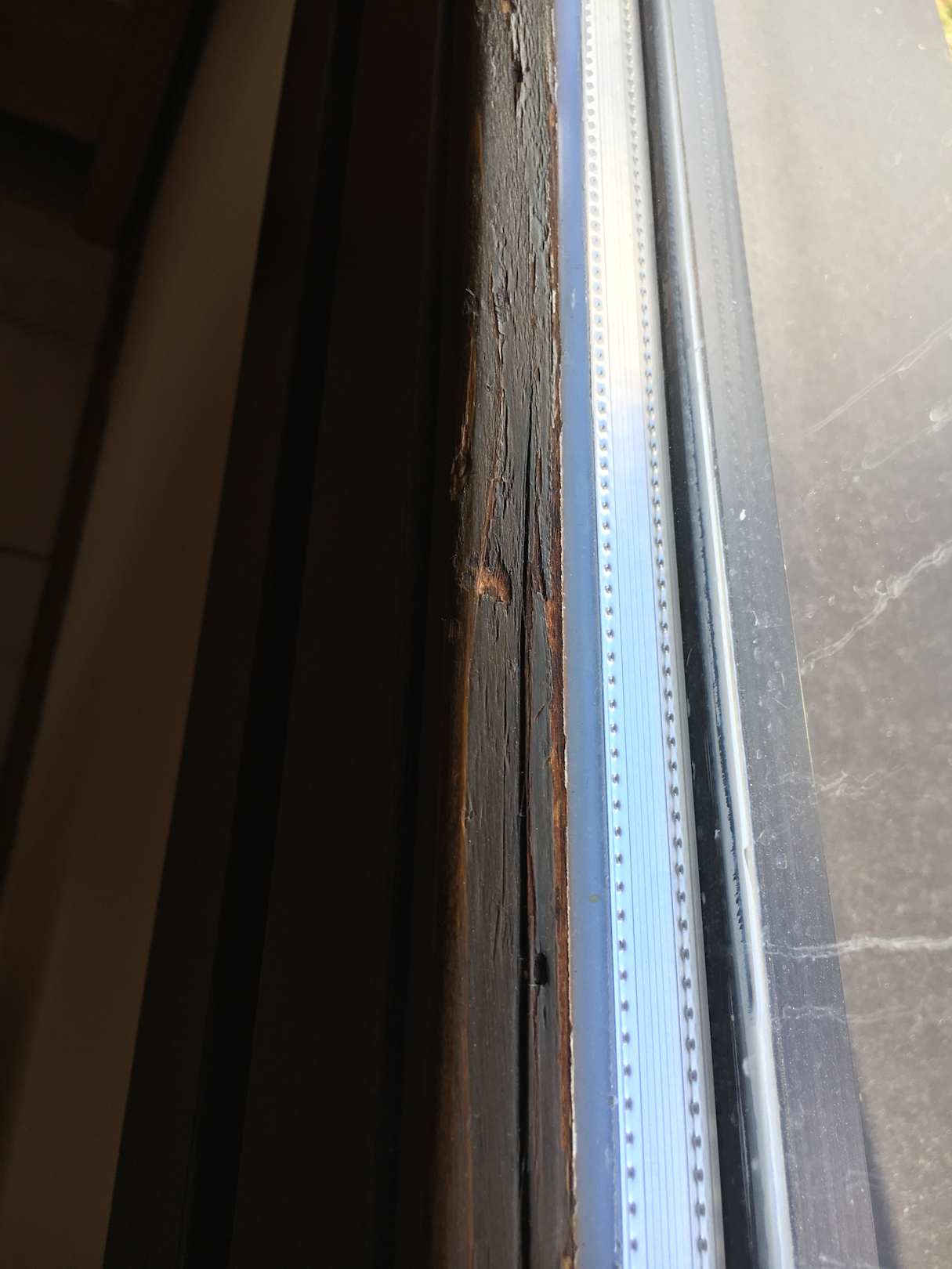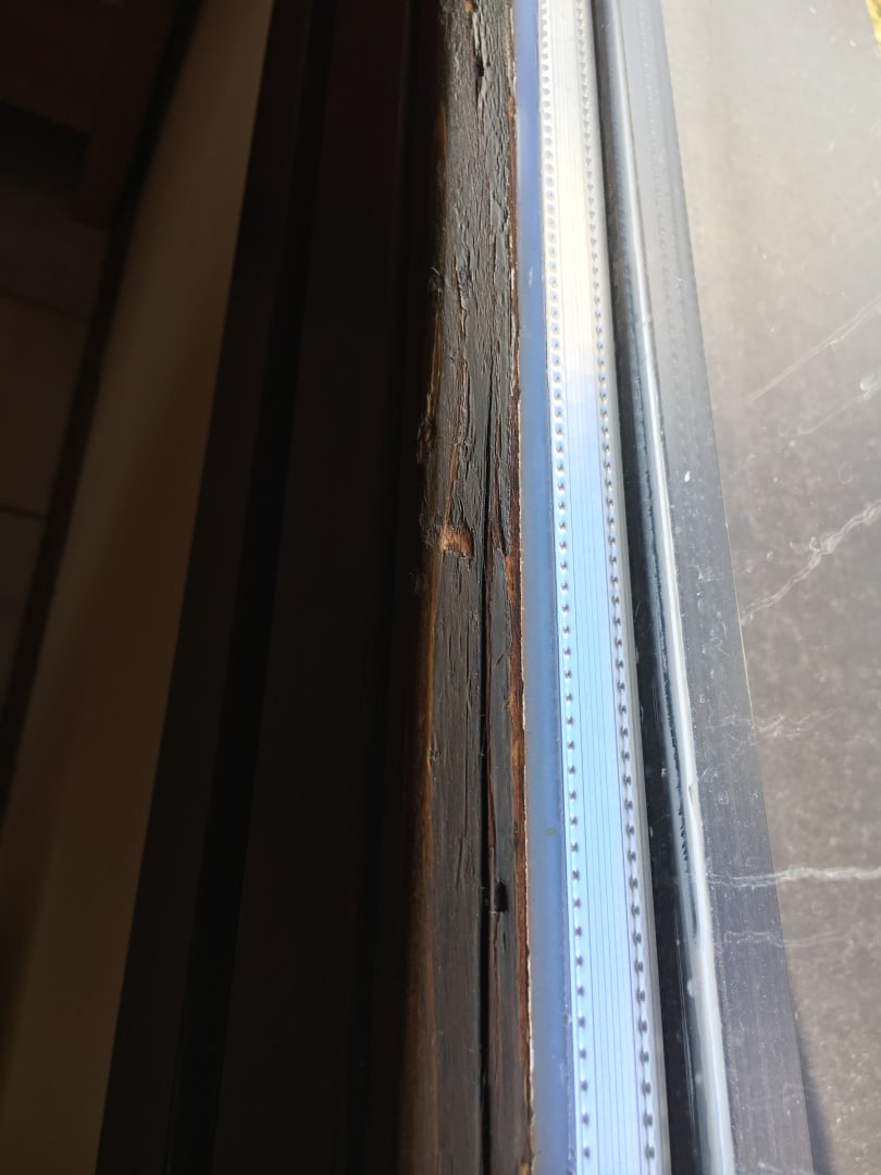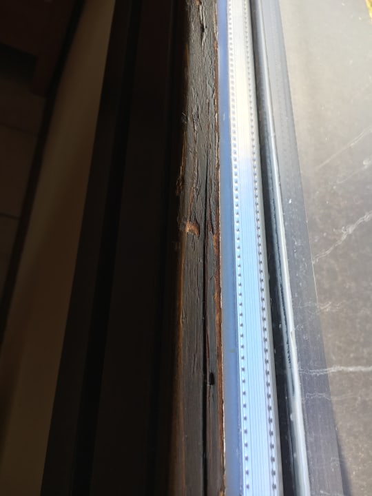 Fenster Wohnbereich Holz gerissen, lange nicht restauriert/ gestrichen