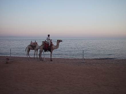 Beduine mit Kamel am Strand