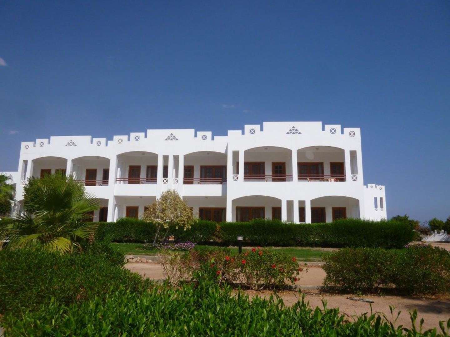Unser HausWir hatten das Zimmer oben rechts, Ansicht vom Strand aus