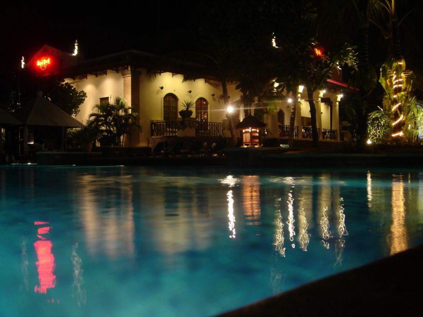 Nachtbild vom Pool mit Blick zum Hard Rock Café