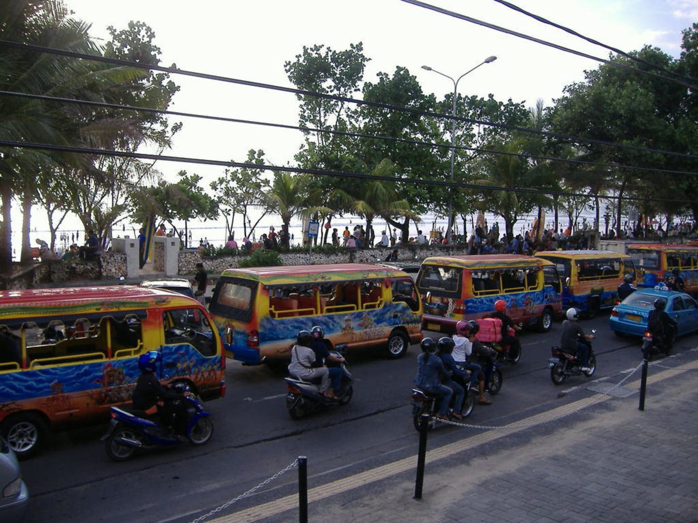BLICK VON DER TERRASSE UND DEM EINGANGSBEREICH AUF DIE STRASSE UND DEN STRAND VOR HOTEL UND CAFE